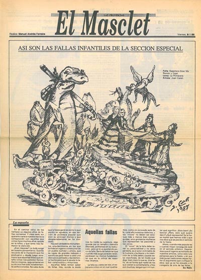 Juan tenía la ilusión, y así me lo expresaba una y otra vez, que su obra, la de 1987, alcanzase por décima vez consecutiva el primer premio con lo que habría que indultar el monumento fallero. No lo consiguió y provocó todo tipo de airadas manifestaciones del propio artista que veía una mano negra en el jurado, como me lo hizo saber en varias ocasiones.