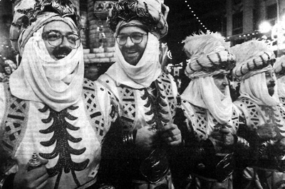¿Ustedes se imaginan a más de un centenar de hombres en calzoncillos vistiéndose con exótica indumentaria musulmana? Espectacular. Si entonces hubiesen existido fotógrafos especialistas en la prensa del corazón, se hubiesen hinchado de fotografías de ciertos personajes, algunos de auténticas exclusivas. Vestirse era algo complicado, pero todo resultaba perfecto gracias a la ayuda y consejos de los proveedores de la ropa, La filà Huracains” de Beniganim.