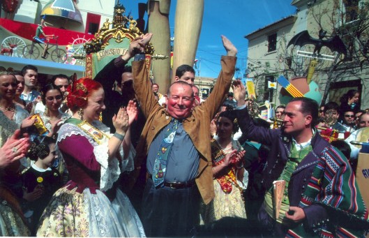 Las creaciones falleras de Manolo Martín las dejaré para otra ocasión. Todas tienen su historia que parte del gran público no conoce. Como avance la fotografía que adjunto es del año 2001, la de la gigantesca figura de Pinocho; falla diseñada por Sigfrido Martín Bugué que hizo realidad Manolo Martín. Ese año la conocida Alaska fue nombrada fallera de honor…..¡pero contaremos más!.
