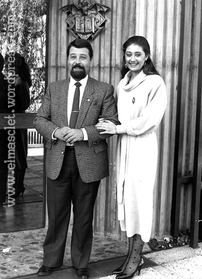 Foto que me regaló el fotógrafo Pepe Penalba, el número uno de la profesión, en la que se comtempla a una espléndida mujer de bellos y luminosos ojos azules a la que acompaña un servidor con un pelazo negro, ahora convertido en nieve pura. Han pasado 26 años.