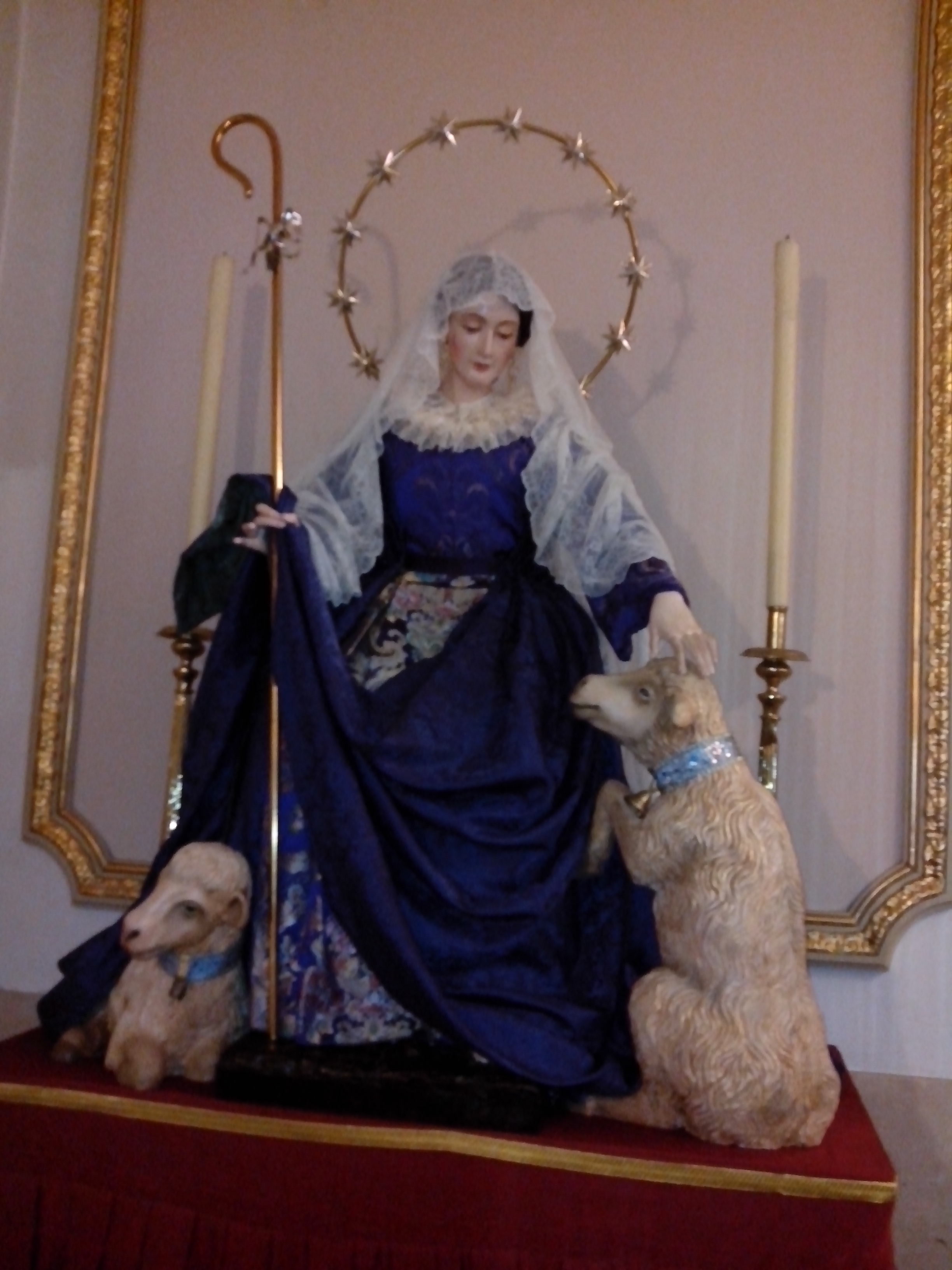 No puede terminar esta breve nota sin hablar del origen de la devoción en España a la Divina Pastora. Todo arranca a principios del siglo XVIII cuando el religioso capuchino fray Isidro de Sevilla, gran devoto de la Virgen María, comenzó a venerarla bajo la advocación de «Divina Pastora de las almas» tras tener una visión donde así se le aparecía. “Conmovido por la belleza de aquella imagen, acudió al taller de un famoso pintor sevillano y le pidió que dibujase en lienzo, la imagen de la Virgen en un paisaje campestre, rodeada de árboles, vestida con una túnica púrpura, una mantilla azul y en su mano un cayado pastoril”, según relata el religioso José Vicente Ciurana en su libro sobre la historia y la devoción a la Divina Pastora.