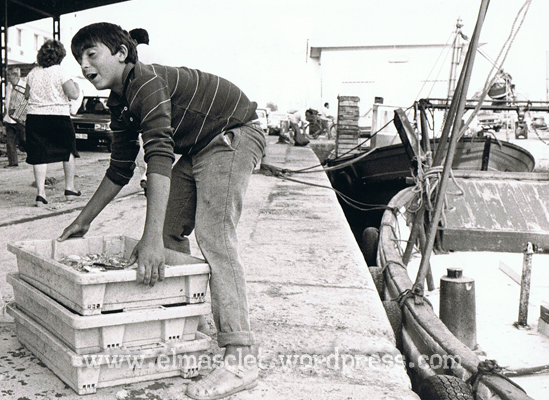 Descarga de pescado, en el antiguo muelle donde estaba la lonja de Pescadores